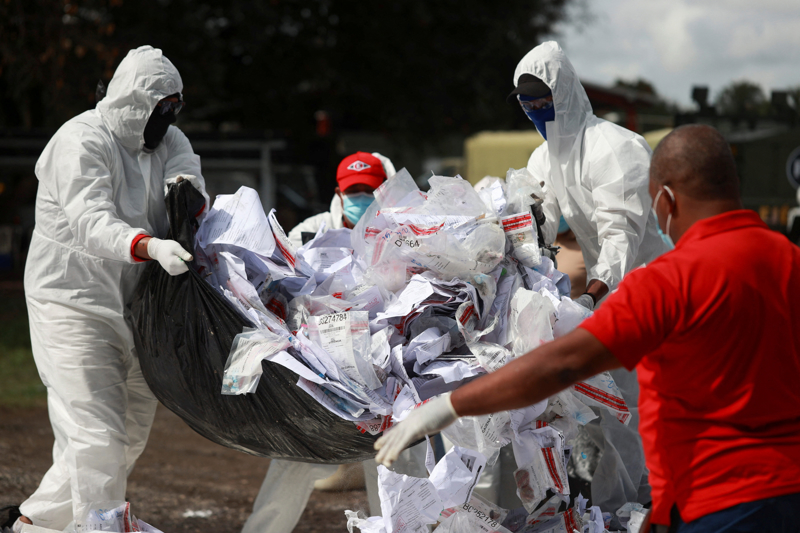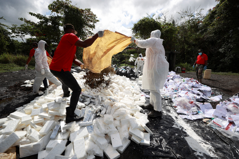 2月26日,工作人员在多米尼加佩德罗布兰德准备销毁毒品。 新华社/路透