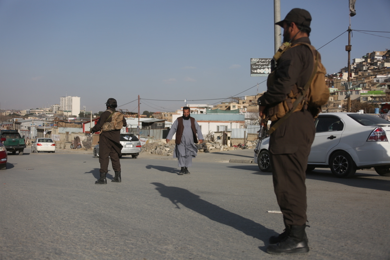 2月27日,阿富汗首都喀布尔遭遇空袭后,安全人员在喀布尔市区主要路口加强警戒。新华社发(塞夫拉赫曼·萨菲摄)